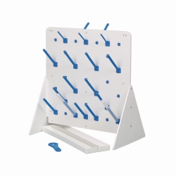 Abtropfgestelle, stehend, aus PVCDas Abtropfgestell kann einfach und flexibel auf einem Tisch oder auf der Arbeitsfläche abgestellt werden. Zwei große Standfüße mit breiten Standflächen sorgen für ausgezeichnete Stabilität. Das Abtropfgestell kann beidseitig genutzt werden und bietet somit die doppelte Aufhängfläche. Zum Entleeren der Auffangwanne kann diese einfach herausgenommen werden.