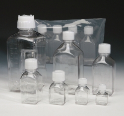 Nährmedienflaschen Nalgene™, PETG, sterilGeeignet für die biopharmazeutische Produktion und Aufbewahrung kritischer Reagenzien und Zwischenprodukte wie z. B. bei der Vakzin- und Proteinaufreinigung. Hergestellt in einem zertifizierten Reinraum nach ISO 14644-1 Klasse 7 erfüllen die Behälter die Richtlinien der US-Pharmakopöe USP <788> und der Europäischen Pharmakopöe EP 2.9.19 bezüglich des Partikelgehaltes. Die Verpackung ist speziell für Reinraumanwendungen konzipiert. Flasche und Schraubverschluss sind durch einen Hitzeschrumpfschlauch versiegelt, der die Unversehrtheit der Sterilität anzeigt. Erfüllen die Anforderungen der US-Pharmakopöe USP Klasse VI und der Europäischen Pharmakopöe zur anormalen Toxizität. Sie sind nicht-zytotoxisch, pyrogenfrei, nicht hämolytisch und konform mit den Verpackungsrichtlinien der US Pharmakopöe USP <661>. Die Kunststoffe sind frei von tierischen Bestandteilen (ADCF). Auslaufsicher. |