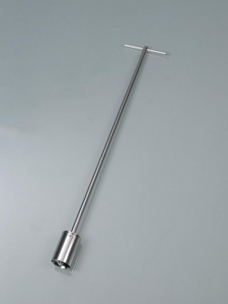 Probenehmer entwickelt für Probenahme von gefrorenen, hochviskosen, pastösen Medien wie z.B. Speiseeis und ähnlichen Substanzen. Die bohrerförmige Schneide schraubt sich beim Drehen selbstständig in das Gefriergut.