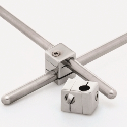 Gefertigt aus verchromtem Stahlguss. Geeignet für Rahmenarbeiten und Fixierung von Stäben in der Senkrechten. Kann vertikal und horizontal an den Stäben entlang geschoben werden.